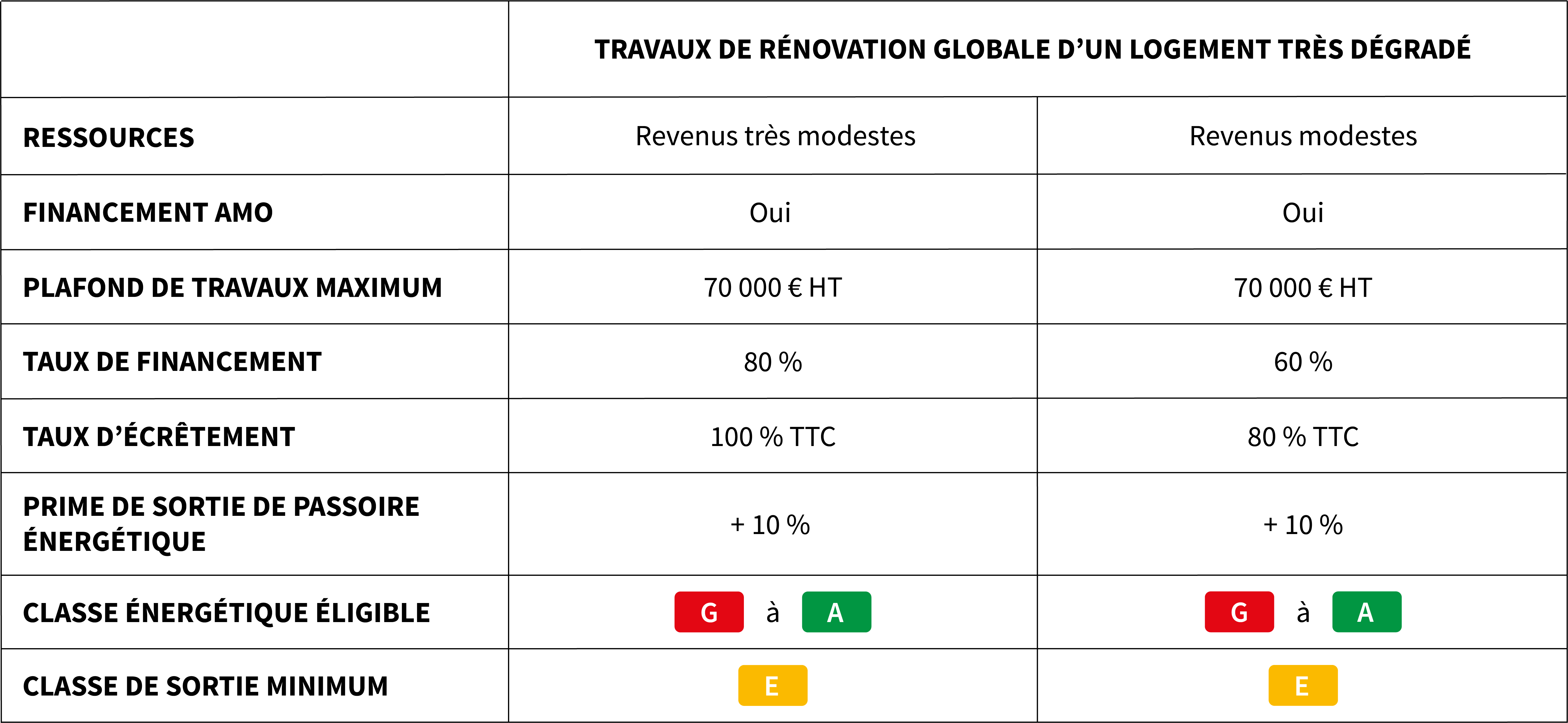 Cette aide est destinée aux propriétaires occupants aux revenus modestes ou très modestes, ainsi qu’aux propriétaires bailleurs, sous réserve d’un conventionnement du loyer. Elle peut également bénéficier aux copropriétés en difficulté.